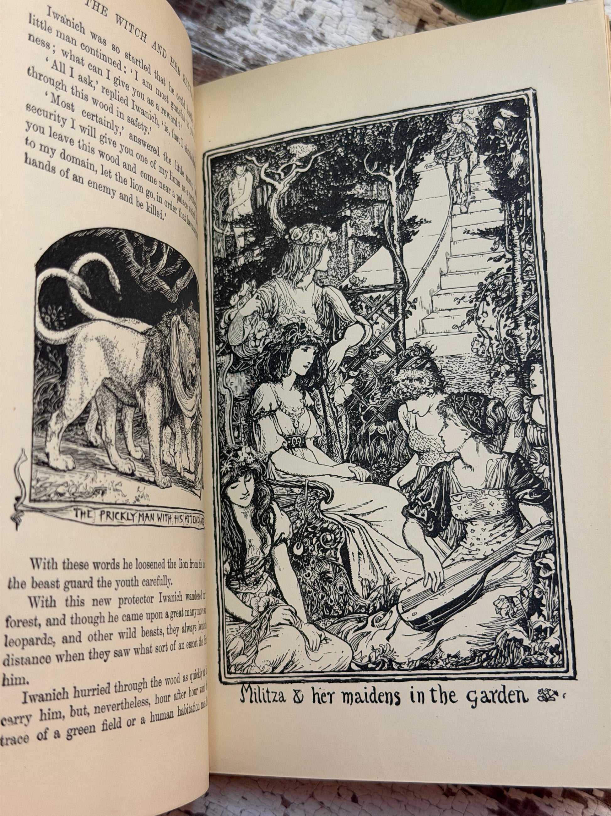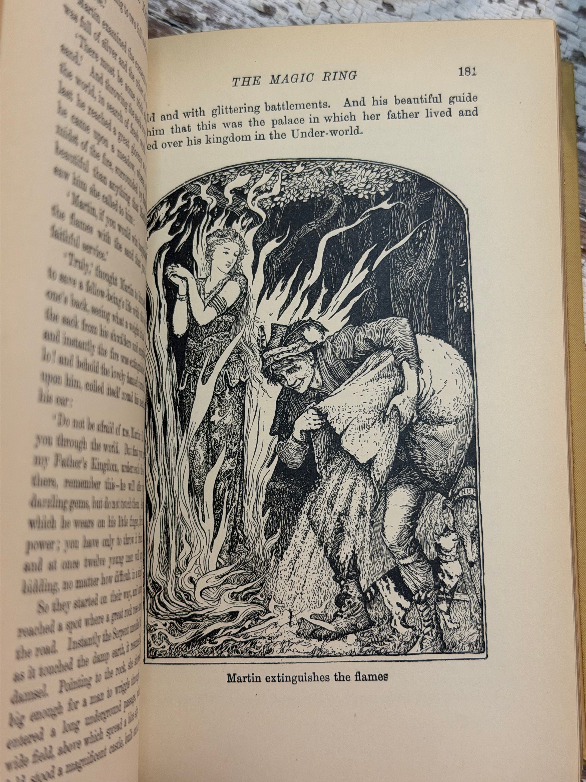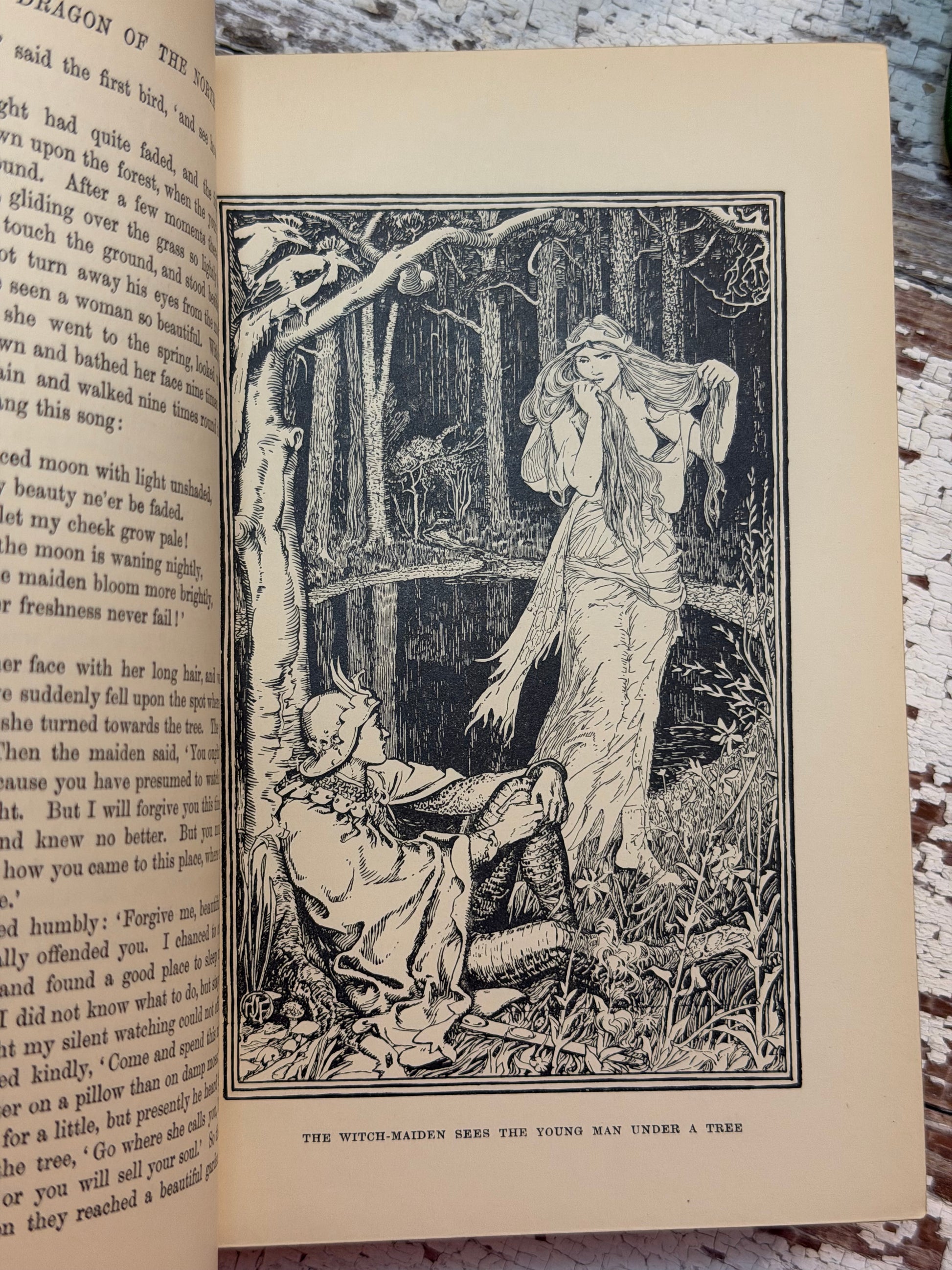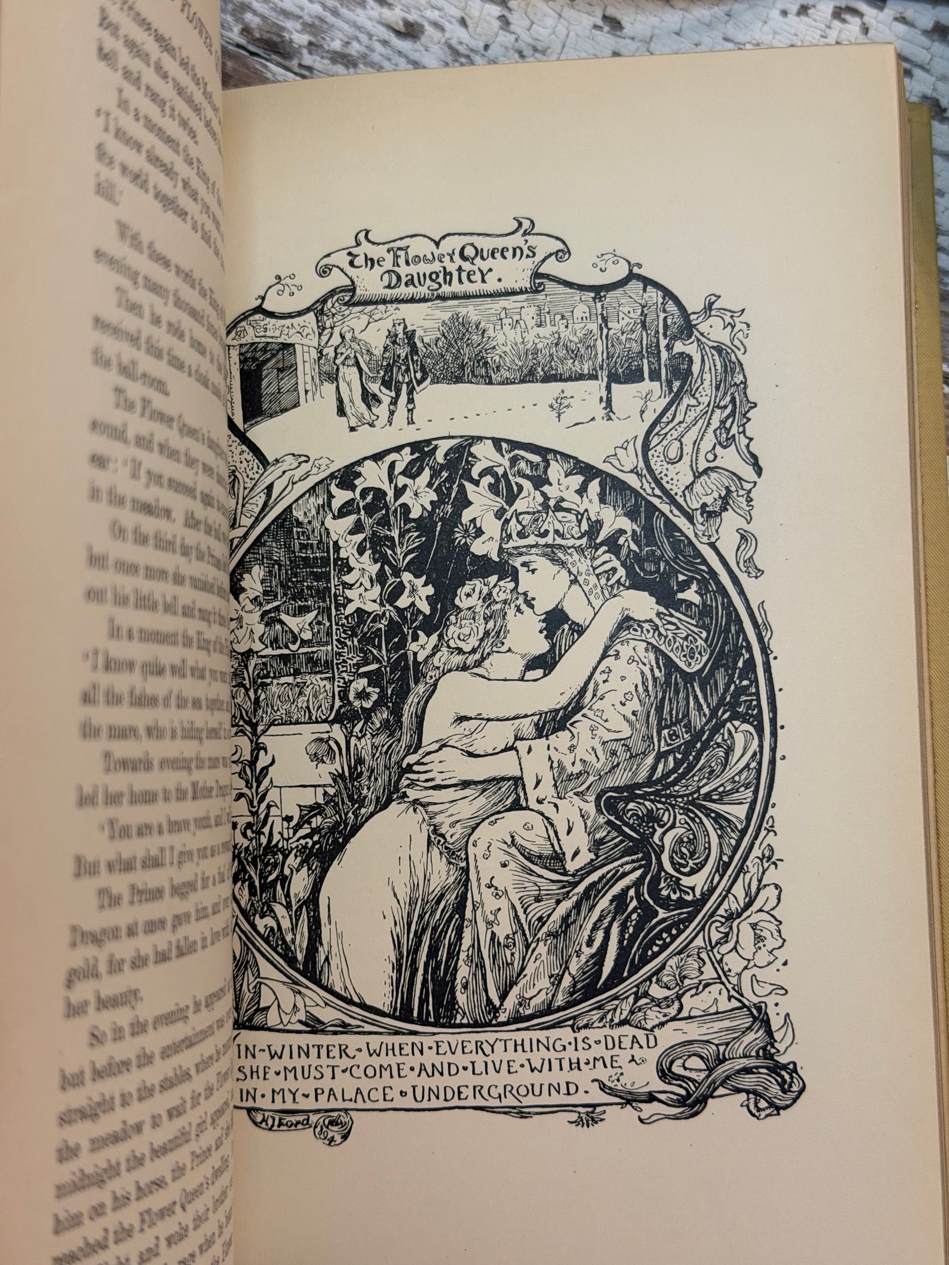 1908 The Yellow Fairy Book by Andrew Lang, with illustrations by H.J. Ford. Published by Longmans, Green and Co. This has a beautiful creamy yellow Victorian binding with a gold gilt cover and spine. Overall it is in great condition for its age and is clean inside and out.