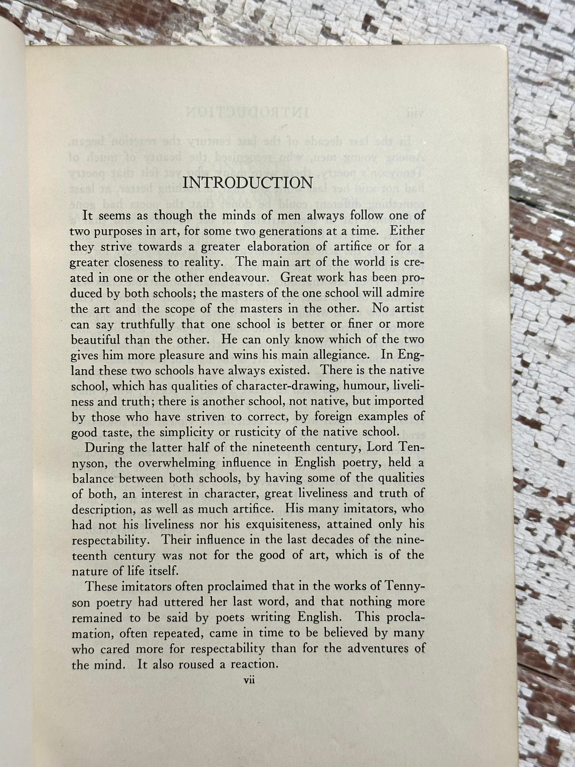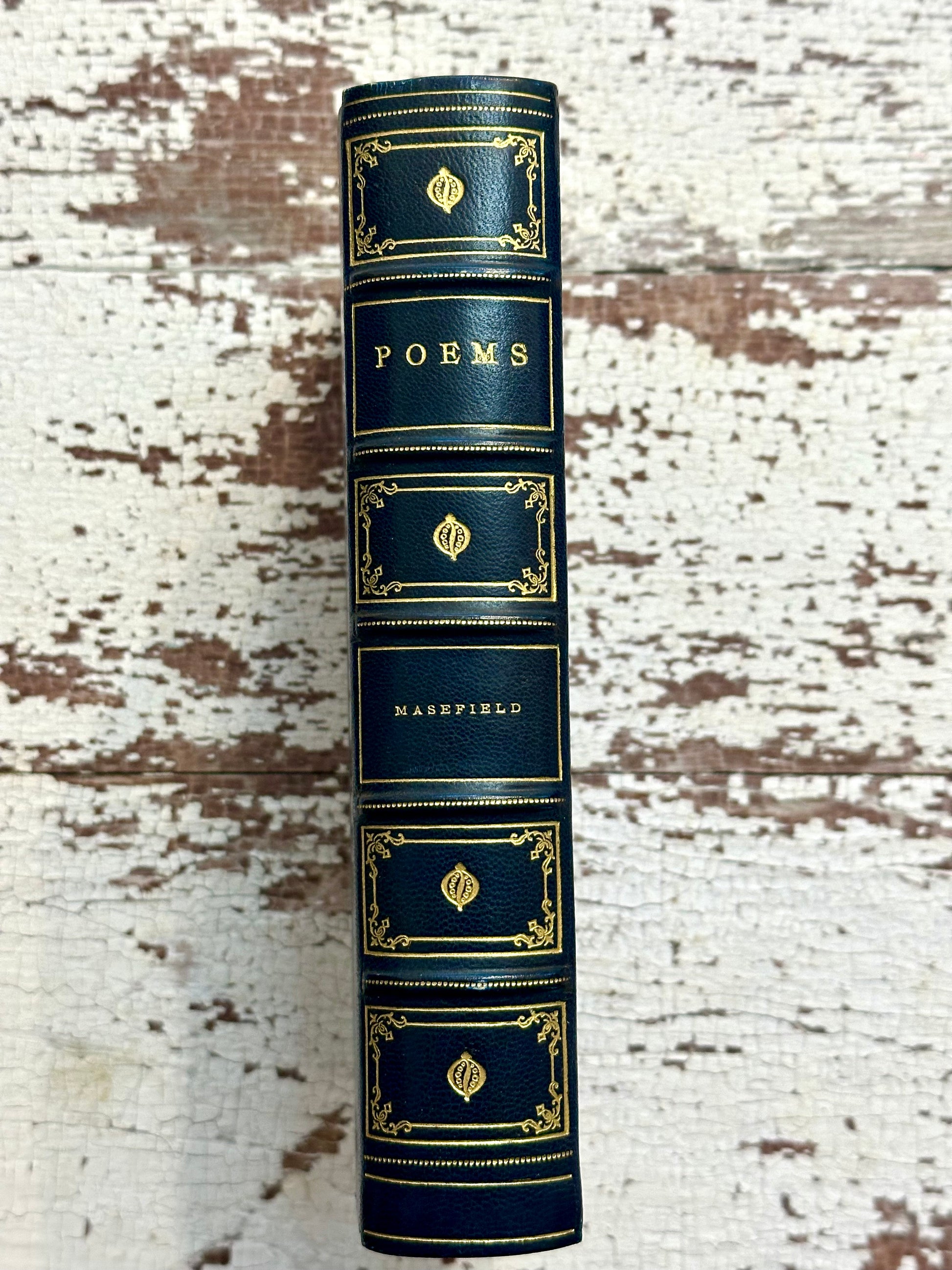 1930 Poems by John Masefield, Complete in one volume. This was published in New York by The Macmillan Company. It is bound in blue leather on the spine and corners… with a beautiful blue canvas fabric on the covers. It has an inscription on the inside that says it was gifted to a girl on her 16th birthday from her father… so sweet!! I adore this…
