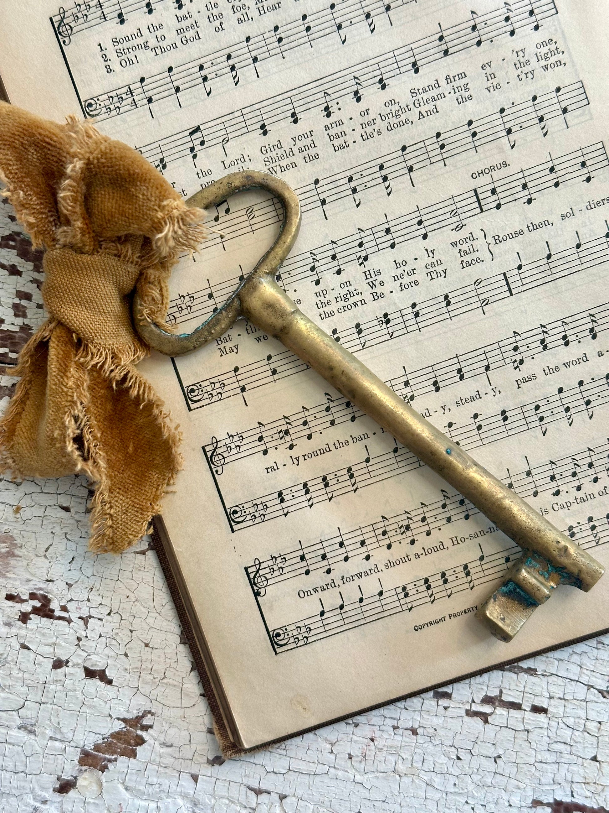 Large antique brass key! This is a beautiful key… great for using as a paper weight, laying out on books or hanging on a wall for decor! I just adore it! It’s 5.5” tall.